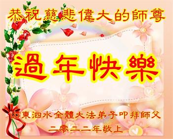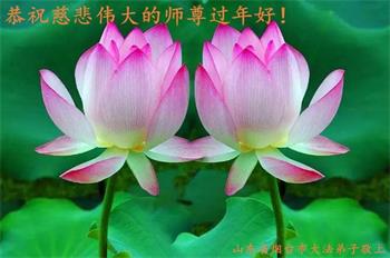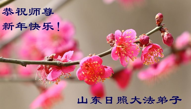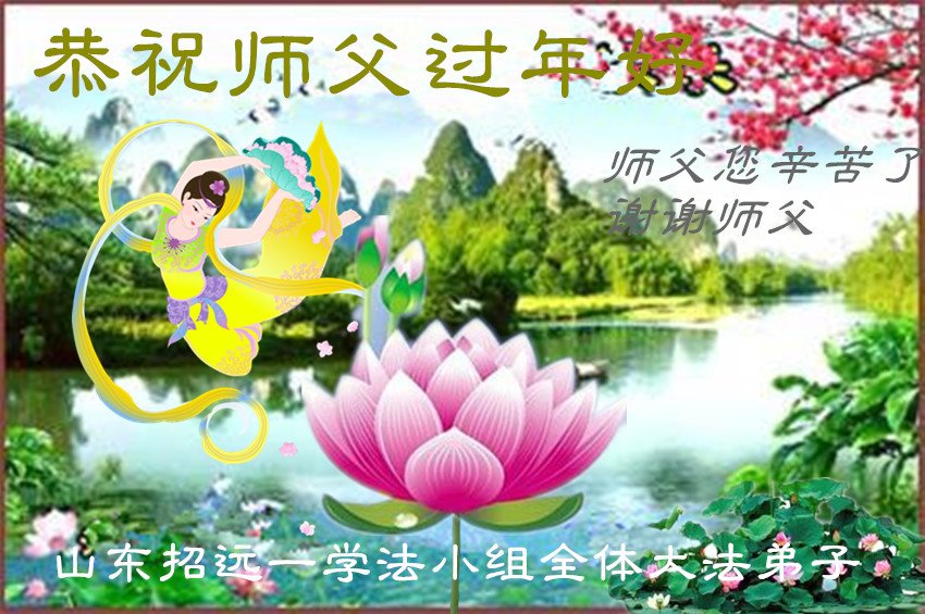 恭祝伟大的师尊过年好! 山东省日照市大法弟子敬上 山东省威海市学法小组大法弟子恭祝慈悲伟大的师父新年好!