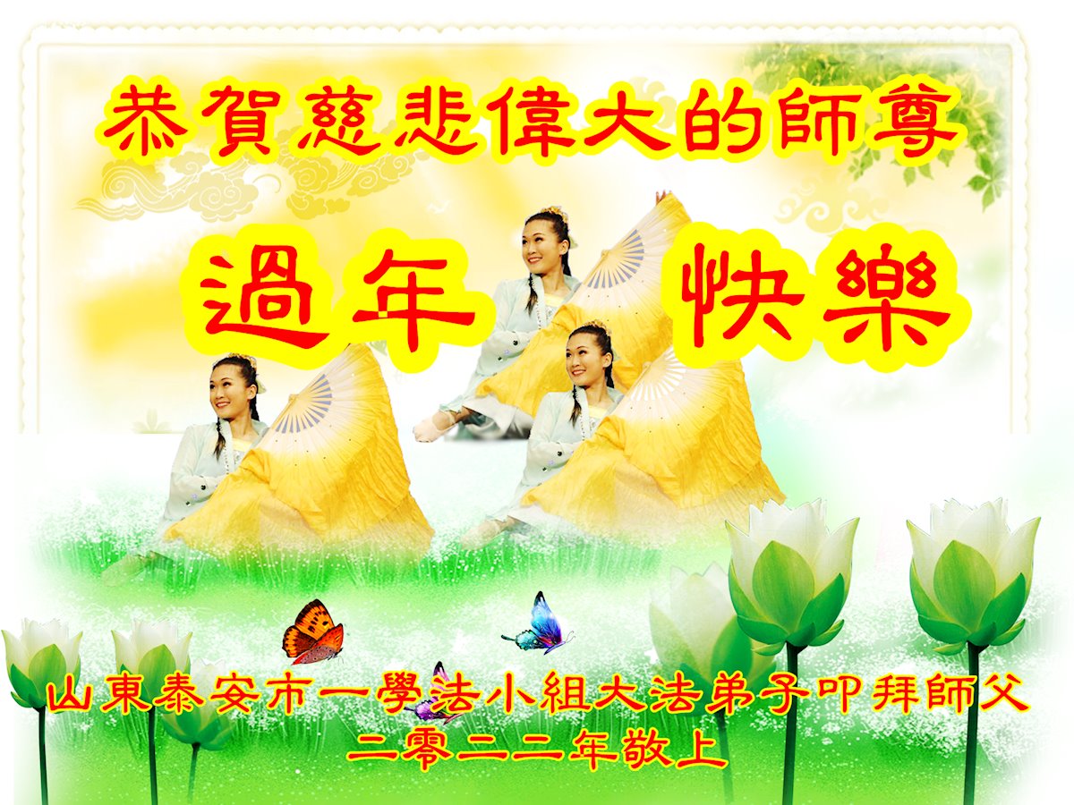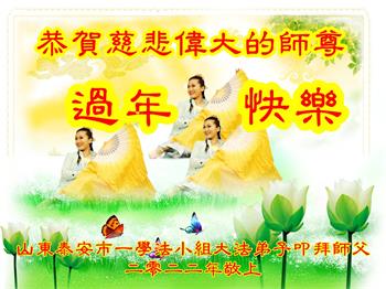 山东省泰安大法弟子恭祝慈悲伟大的师尊新年快乐!