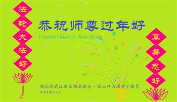 湖北省武汉市东湖高新区一家三位大法弟子恭祝师尊过年好!