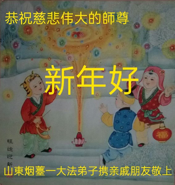 伟大师尊新年好 大法洪传众生笑 大法弟子紧跟师 师尊教导要记牢 救度众生讲真相 个人安危脑后抛 山东省威海一大法弟子恭祝师尊过年好!新年快乐!