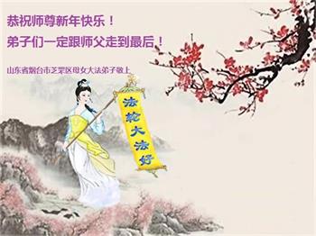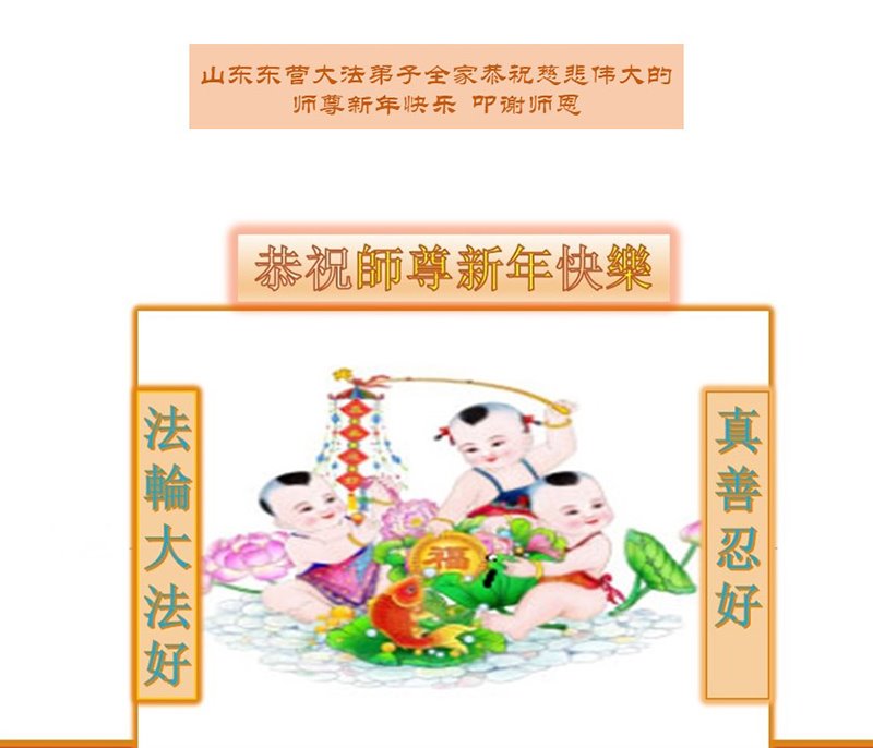 祝愿师尊新年好 弟子慈悲救世人 弟子惟愿师尊笑 三件事情定做到 山东烟台一学法小组大法弟子恭祝师尊过年好!