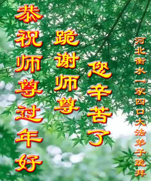 弟子一定会奋力精進,做好三件事,兑现自己来世的誓约,随师父回家。跪拜师尊! 河北省衡水市深州市一大法弟子及全家给师尊拜年!师父您辛苦了!
