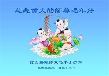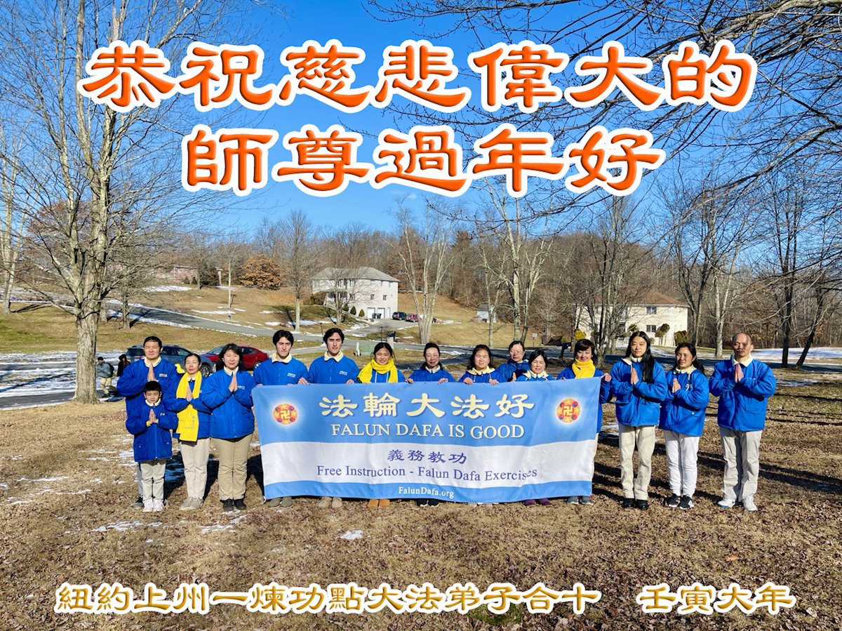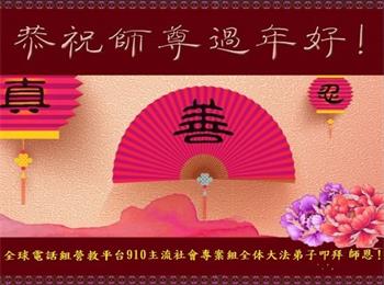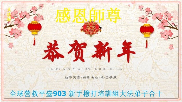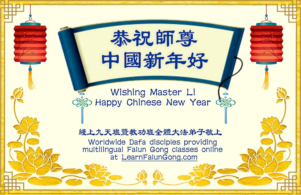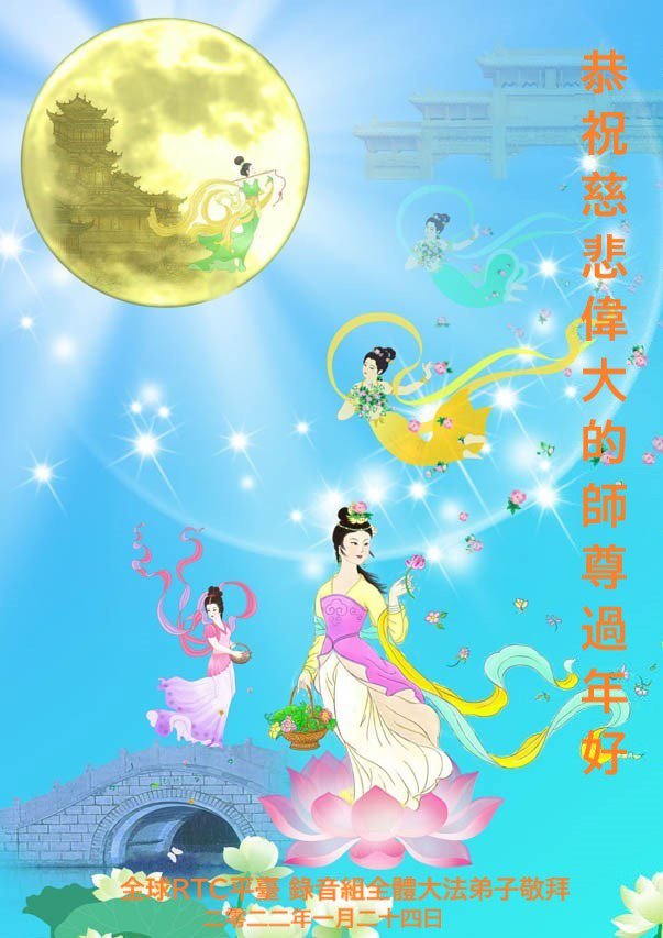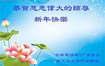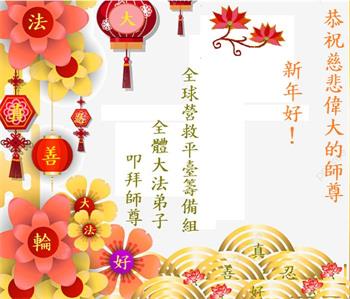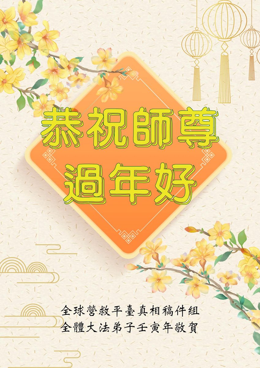 | 【明慧网二零二二年二月一日】在中共迫害法轮大法的二十三年中,世界各地的大法弟子肩负着向本国和中国大陆被谎言欺骗的众生讲真相的使命,他们共同建立媒体,以游行、景点讲真相、集体炼功洪法等各种方式将法轮大法好的真相传遍世界。 在中国新年到来之际,海外各国大法弟子们恭祝师尊新年好!大法弟子们会坚修大法,多讲真相,救度各阶层世人,援助中国大陆仍在遭受中共迫害的大法弟子。 师尊慈悲转法轮 苍宇换新众神惊 真相福音遍世界 得救众生谢师尊 线上九天班暨教功班全体大法弟子恭祝师尊中国新年好!海外全球.退:党!中心电话组DHT平台全体大法弟子恭祝师尊新年好!恭祝慈悲伟大的师尊新年好!感恩师尊慈悲苦度!师尊您辛苦了!弟子们会珍惜万古机缘,学好法,修好自己,抓紧去人心。放下自我、同心协力相互配合好多救人!惟愿师尊笑!法轮大法好,真善忍好! 全球.退:党!中心电话组DHT平台全体大法弟子合十敬上! 墨尔本弗兰克斯顿(Frankston)炼功点大法弟子恭祝师父中国新年快乐!位于澳大利亚墨尔本的海滨度假胜地,弗兰克斯顿(Frankston)法轮大法炼功点是一个能代表澳洲特色的多元文化社区,学员来自澳洲本地以及英国、爱尔兰、马来西亚、土耳其、波兰和罗马尼亚的移民,每周一起集体炼功。尽管墨尔本在过去两年曾一直处于封锁状态,但学员们仍然能够在遵守政府相关规定的前提下坚持在弗兰克斯顿炼功点炼功,并向过往的民众介绍大法的美好和反迫害的真相。中国新年来临,弗兰克斯顿炼功点的全体大法弟子,恭祝慈悲伟大的师父新年快乐!感恩师尊的慈悲救度。弟子们将更加精進,不负师恩。 全球电话组手机讲真相平台(CTT)大法弟子恭贺师尊过年好!加拿大温哥华天国乐团全体大法弟子恭祝师尊过年好!全球营救平台全体大法弟子恭祝师尊过年好!日本横滨炼功点大法弟子恭祝师尊过年好!师恩浩荡,弟子无以回报,愿以实修、多救人完成使命为献礼。 新西兰奥克兰公园炼功点大法弟子恭祝师父过年好!在这新的一年里,我们要更加珍惜救人的机会,做好师父安排的三件事,在矛盾面前向内找,做真修实修的大法弟子,让炼功点真正成为洪扬大法、救度众生的好环境。 希望.之声全体大法弟子恭贺师尊壬寅年新年快乐!加拿大温哥华在中领馆前反迫害的大法弟子给师尊拜年!恭祝师尊新年快乐!感恩师尊慈悲救度众生,恭祝师尊新年快乐! 加拿大温哥华学员感恩师尊慈悲救度众生,恭祝师尊新年快乐! 加拿大大瀑布景点大法弟子恭祝师尊新年快乐!德国电话讲真相小组全体大法弟子恭贺师父过年好!新西兰腰鼓队大法弟子恭贺师尊过年好!腰鼓是救度众生的法器,我们在做好师父安排的三件事的同时,请师父放心,我们要把鼓打好,打出内涵,救度更多的有缘人。 美国彩虹印刷装订厂全体大法弟子恭祝师父过年好!法国电话组大法弟子恭祝师尊过年好!法国电话组大法弟子恭祝师尊过年好!新的一年,我们要救更多的海内外华人,不辜负师尊的慈悲救度! 全球电话组DHT平台全体大法弟子恭祝慈悲伟大的师尊新年快乐!全球电话组DHT平台一学法小组大法弟子恭祝慈悲伟大的师尊新年快乐!全球营救平台筹备组全体大法弟子恭祝慈悲伟大的师尊新年好!弟子们一定听师尊的话,多学法,多救人,去执着。 全球营救平台910主流社会专案组全体弟子恭祝师尊过年好!弟子们感恩师尊洪传大法、慈悲救度!弟子们会坚修大法,同化大法,听师父的话,做好三件事,援助大陆大法弟子主体,救度主流社会的众生,走正随师正法回家的路,圆满功成。910全体弟子叩谢师恩! 全球营救平台发正念组全体大法弟子恭祝师尊新年快乐!全球营救平台发正念组全体大法弟子恭贺 马来西亚阿罗街真相点全体大法弟子恭祝慈悲伟大的师尊新年快乐!师尊一念 法力无边正天纲 弟子践约 红尘深处化做救人场 有缘众生 喜闻法轮大法真相 除尽邪恶 祥瑞万千乾坤朗 加拿大多伦多旅游景点大法弟子恭祝师尊新年快乐!全球营救平台美西组大法弟子恭祝师尊新年快乐!全球营救平台911学法房间全体大法弟子恭祝师尊过年好!全球营救平台903新手拨打培训组大法弟子恭祝师尊新年快乐!感恩师尊!亚利桑那州格兰戴尔炼功点大法弟子恭祝师尊过年好!澳洲手机自动电话项目全体大法弟子恭祝师尊过年好!海外全球.退:党!中心电话组DHT平台701口讲组全体大法弟子恭祝师尊新年好!全球营救平台美西组拉斯维加斯大法弟子恭祝师尊新年快乐!全球营救平台全体大法弟子恭祝慈悲伟大的师尊过年好!全球营救平台全体大法弟子叩拜师尊!恭贺师尊过年好!法轮大法好,真善忍好! 全球营救平台真相稿件组全体全体大法弟子恭祝师父过年好!感谢师父的慈悲加持与看护,弟子们又走过了充满收获的一年。 壬寅年到来之际,弟子们恭祝慈悲伟大的师父过年好!谢谢慈悲伟大的师父! 纽约腰鼓队大法弟子恭祝慈悲伟大的师尊过年好!韩国腰鼓队大法弟子恭祝慈悲伟大的师尊过年好!加拿大多伦多旅游景点讲真相全体大法弟子恭祝师尊新年快乐!多伦多旅游景点讲真相学法组、尼亚加拉大瀑布真相点、唐人街退!党!平台、退!党!热线、电视塔真相点、皇后公园真相点、湖边码头真相点全体大法弟子恭祝师尊新年快乐! 希望.之声媒体集团恭祝师尊新年好!师尊辛苦了!韩国RTC电话组全体大法弟子恭祝慈悲伟大的师尊