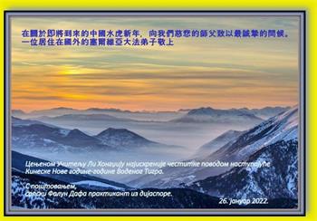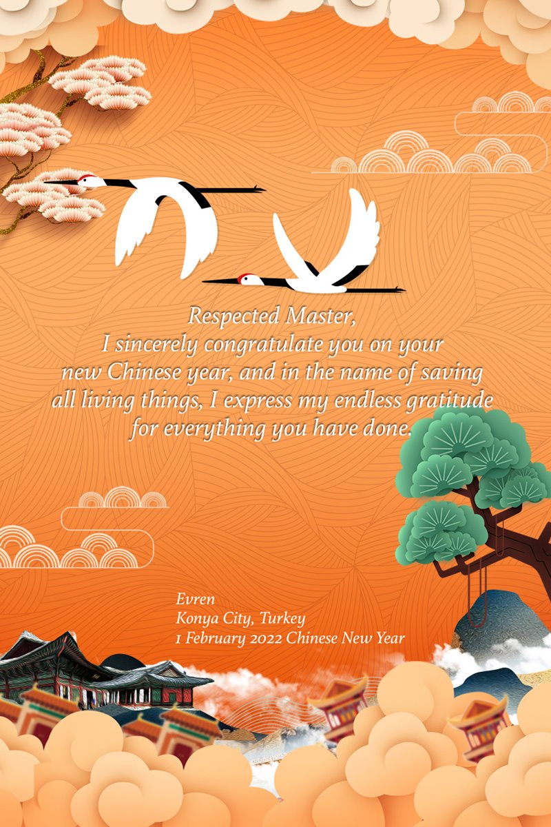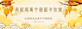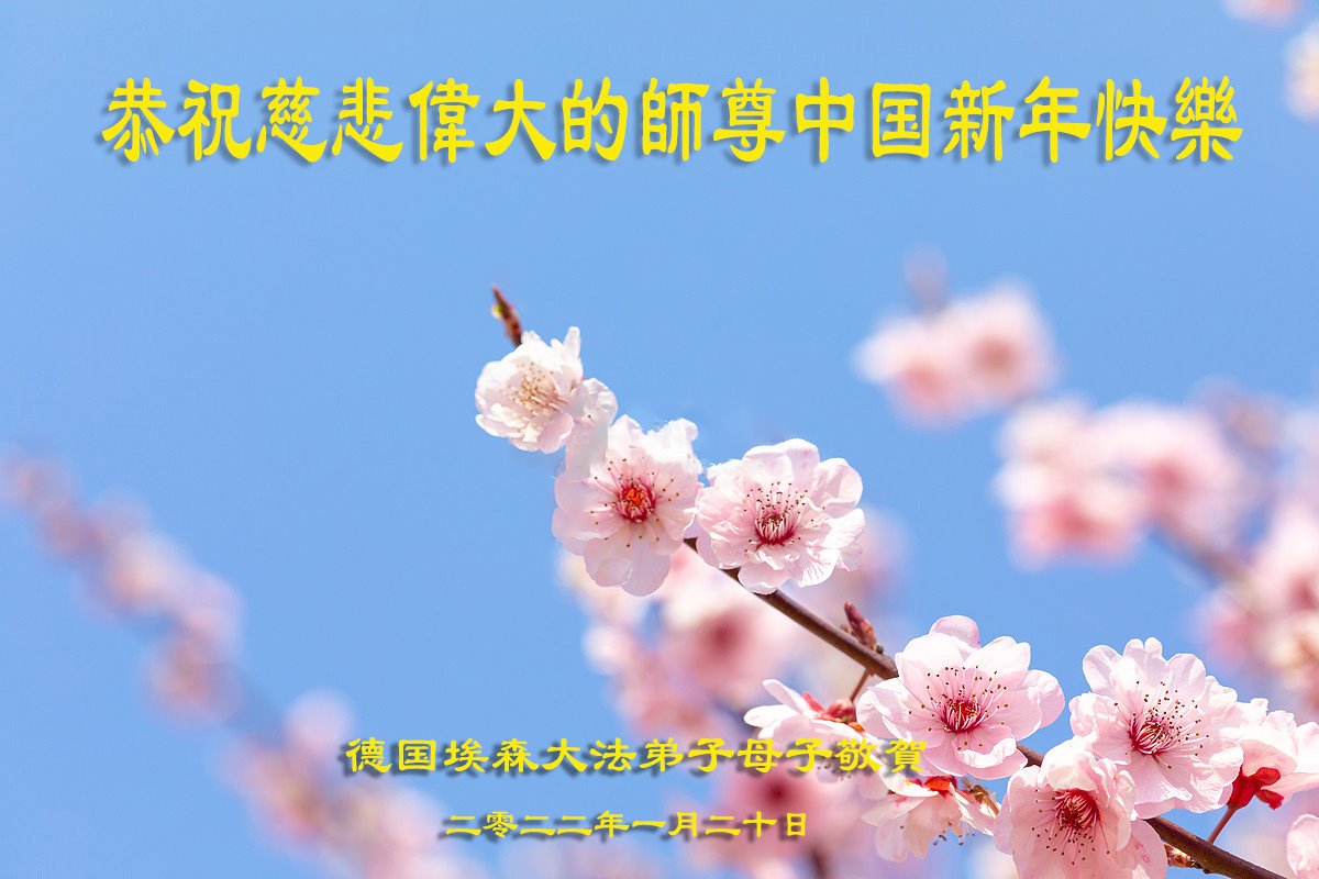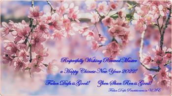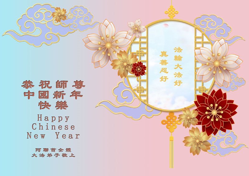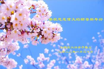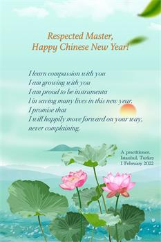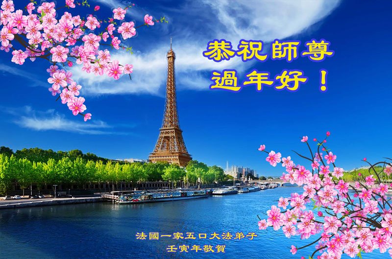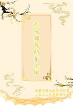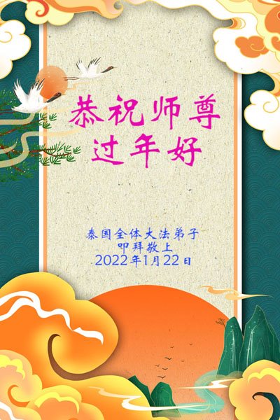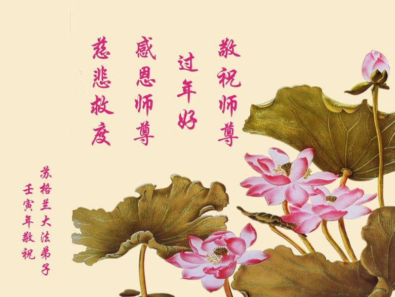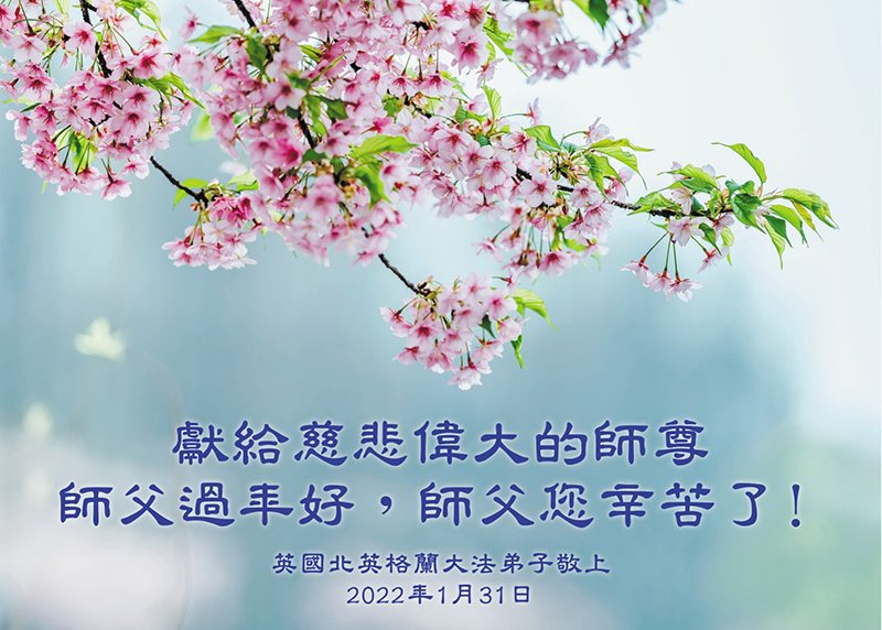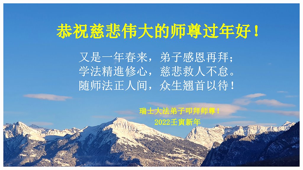 | 【明慧网二零二二年二月一日】法轮飞旋,光阴如梭,洪贯全天体的正法洪势迅不可挡,已向法正人间过渡。遍布世界的法轮大法弟子与得到大法福报的众生都真切感受到了大法的威力、慈悲和殊圣。在这辞旧迎新的传统新年,各国大法弟子恭祝师父新年好!虔诚感恩师尊的慈悲看护,庆幸得到这万年难遇的圣缘,在转瞬即逝的正法修炼路上弟子们将精進不怠。 下面是部份来自中国、美国、加拿大、澳大利亚、新西兰、英国、爱尔兰、丹麦、德国、瑞典、西班牙、意大利、荷兰、奥地利、台湾、香港、法国、韩国、越南、俄罗斯、芬兰、波兰、蒙古国、日本、马来西亚、印度尼西亚、捷克、巴西、印度、克罗地亚、斯洛文尼亚、新加坡、泰国、以色列、阿联酋、波黑、保加利亚、瑞士、乌克兰、塞尔维亚、黑山、塞浦路斯、阿联酋、罗马尼亚、南非、泰国、斯洛伐克、厄瓜多尔、苏格兰、伊朗、菲律宾、尼泊尔、土耳其、匈牙利、葡萄牙、澳门、摩尔多瓦、沙特阿拉伯、立陶宛、希腊、比利时、加蓬、克里米亚等63国家和地区大法弟子对师父的感恩。 澳大利亚墨尔本全体大法弟子恭祝师尊过年好!师恩浩荡!弟子们难以用语言表达无尽的感恩!唯有在新的一年里更精進,在大法的指引下,纯纯净净修好自己,走好走正最后的路,兑现誓约,助师救度更多有缘众生共登法船,随师返回师尊正法造就的最美好的新家园。 越南大法弟子恭祝慈悲伟大的师尊新年快乐!俄罗斯莫斯科大法弟子向师尊拜年!祝师尊过年好!2022年的中国新年来临之际,莫斯科大法弟子怀着无比感恩之心向慈悲伟大的师尊问好!祝师尊过年好! 壬寅新年喜迎春 感恩不尽谢师尊! 风雨兼程不停顿, 助师正法正乾坤! 俄罗斯莫斯科大法弟子 合十 芬兰全体大法弟子恭祝师父过年好!蒙古国全体大法弟子恭祝师尊新年快乐!美国休士顿全体法轮大法弟子恭祝伟大慈悲的师尊新年快乐!谢师恩 天地十方迎新春 弟子叩拜谢师尊 修心去执更精進 正念正行多救人 美国休士顿全体法轮大法弟子敬贺 西班牙全体大法弟子恭祝慈悲伟大的师父过年好!日本北海道全体大法弟子恭祝慈悲伟大的师父过年好!师父辛苦了!感谢师父慈悲救度!我们会做好三件事,救度一方众生。 韩国首尔中部大法弟子恭祝师尊过年好!马来西亚大法弟子恭祝师尊新年好!印度尼西亚巴利岛一大法弟子和家人恭祝师尊新年快乐!在这辞旧迎新之际,无限的感恩师尊对弟子的慈悲保护,庆幸我们和师尊有这亿万年的圣缘,法正人间在此时,同祝、同庆、同贺。 越南大法弟子恭祝师父新年快乐!捷克大法学员恭贺师尊中国新年好!丹麦一家三位大法弟子给慈悲伟大的师父拜年!师父过年好! 正法修炼中时刻沐浴着浩荡师恩,感恩师尊,叩拜师尊! 在神的路上 学法修心路不迷 助师正法志不移 拳拳之心传真相 匆匆步履救人急 祛除人念明法理 名利情仇修自己 无私无我无执着 劫关魔难砺心志 日本青年大法弟子恭祝师尊过年好!感谢师尊的慈悲救度!感谢师尊将宇宙大法传授与弟子,也感谢师尊在这20多年的风雨修炼路中的慈悲保护,师恩浩荡! 在即将到来的壬寅年中弟子要更加精進,做好三件事,愿师尊少为弟子操劳。 马来西亚丹绒马林大法弟子恭祝慈悲伟大的师尊新年快乐!师尊的无上恩赐,弟子感恩万分!现在弟子每天都要做好救度中国大陆众生的项目,完成和师尊签订的誓约,直到圆满随师还。 香港大法弟子恭祝师父过年好!印度全体大法弟子恭祝慈悲的师父中国新年快乐!新西兰汉美顿市恭祝师尊过年好!法国一家五口大法弟子恭祝慈悲伟大的师父过年好!在壬寅年到来之际,弟子一家在法国遥祝慈悲伟大的师父过年好!过去的一年里,在师父的慈悲保护与加持下,弟子们走过了一关又一难。是慈悲伟大的师父用巨大的承受,换来了弟子们在修炼上不断的成熟。师父的佛恩浩荡,弟子们无以回报,只希望在新的一年里,抓紧修好自己,无条件同化真、善、忍,让师父多一份欣慰。 德国埃森大法弟子母子恭祝慈悲伟大的师尊中国新年快乐!瑞典大法弟子恭祝慈悲伟大的师尊过年好!克罗地亚大法弟子恭祝师尊过年好!奥地利格拉茨大法弟子恭祝慈悲伟大的师尊中国新年快乐!爱尔兰大法弟子恭祝师尊过年好!恭祝师尊过年好! 师尊辛苦又一年 神韵传遍人世间 万物更新念师恩 真善忍好记心田 众生得救苍宇安 真相使人添正念 一缕清香拜师尊 纯纯净净化圣莲 爱尔兰大法弟子叩拜! 斯洛文尼亚大法弟子恭祝师父过年好!台湾全体大法弟子恭祝师尊新年好!丹麦大法弟子携子女恭祝师尊新年好!恭祝师尊新年好! 新加坡大法弟子恭祝师尊新年好!泰国全体大法弟子恭祝慈悲伟大的师尊过年好!全体以色列法轮大法弟子恭祝师尊新年好!阿联酋阿布扎比一夫妻大法弟子恭祝师父中国新年好!加拿大蒙特利尔大法弟子恭祝师尊过年好!师父过年好!加拿大蒙特利尔大法弟子叩谢师恩! 巴西大法弟子恭祝师父新年快乐!意大利博洛尼亚大法弟子恭祝师尊新年好!时光流转又新年 恭祝师尊新年好 学法修心明法理 精進实修去执著 层层魔障脚下踩 紧随师尊救众生 意大利大法弟子恭祝师尊新年好!新的一年里,弟子一定加倍努力学好法,不断去掉执着心,飞快突破自我,勇猛精進,用更加纯净的正念在不同的救人项目中发挥大法粒子的作用,助师正法,圆容整体。 俄罗斯大法