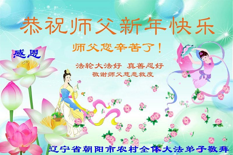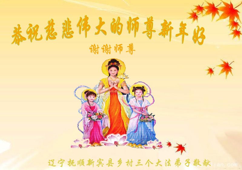 弟子在新的一年里更好的修好自己,多救人,配合整体,兑现誓约,完成使命,不负师恩。 谨此代表辛集市农村部份地区大法弟子恭祝师父新年快乐! 辽宁抚顺新宾县乡村九个大法弟子恭祝慈悲伟大的师尊新年好!