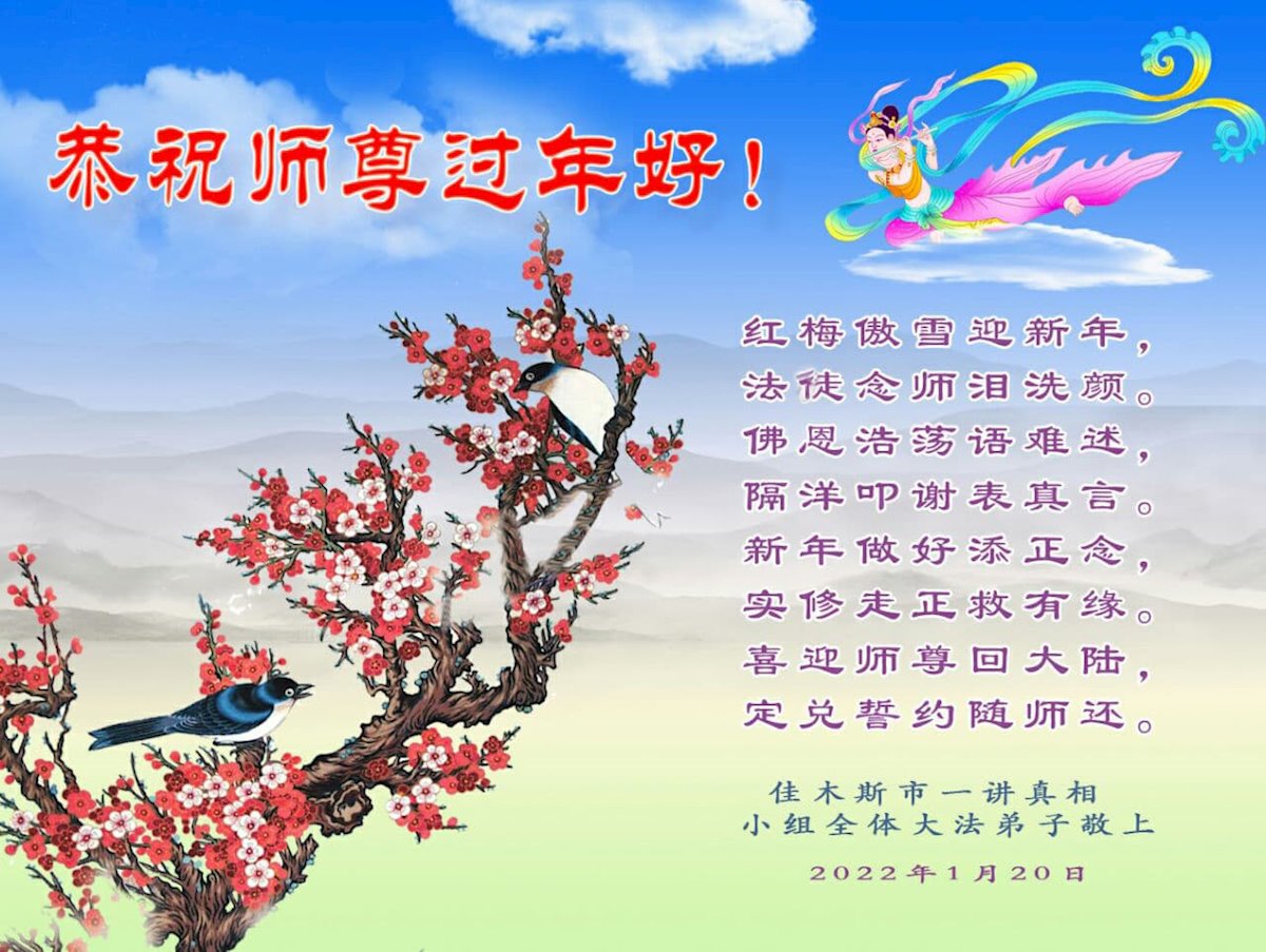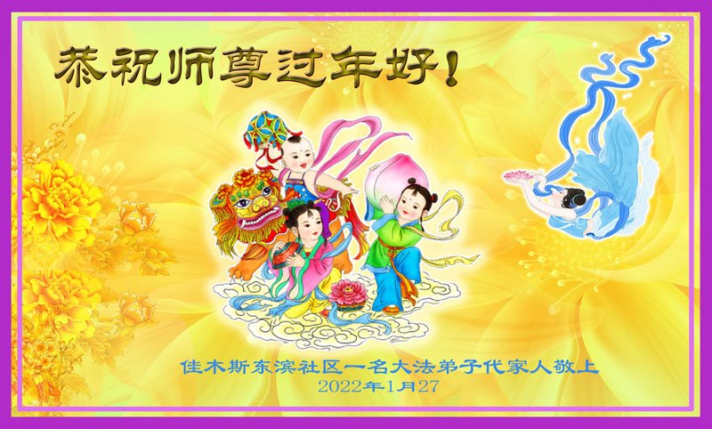 【明慧网二零二二年二月一日】 黑龙江省佳木斯东滨社区一名大法弟子代全家人恭祝师尊新年快乐!