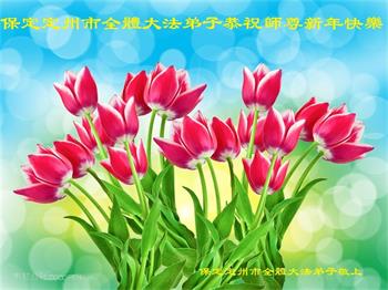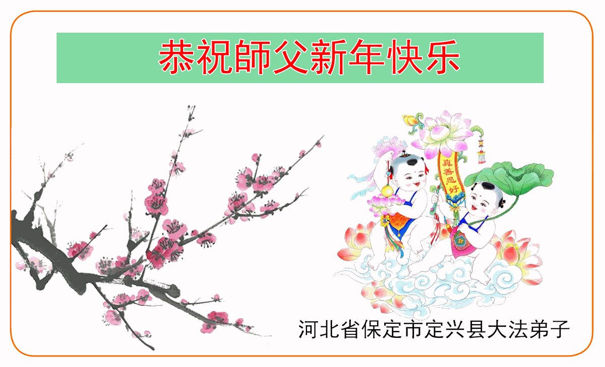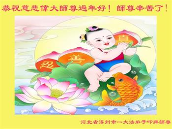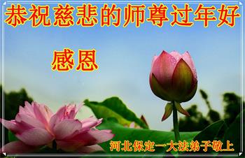 弟子无法用任何语言来表达对师尊的慈悲苦度!只有在新的一年里努力做好三件事来回报师尊。弟子跪拜师尊! 河北省保定定州市全体大法弟子恭祝师尊新年快乐!