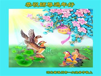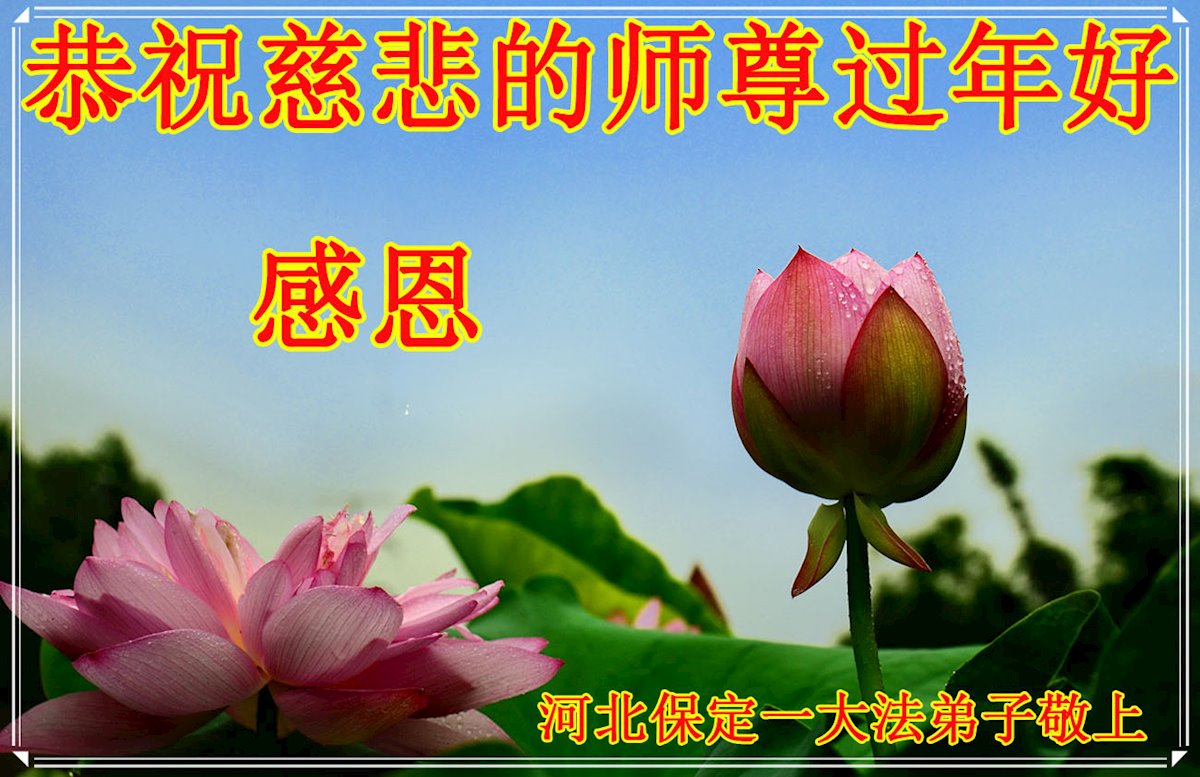 感恩师父的救度和保护! 师父辛苦了。弟子们要在新的一年里更加精進,做好三件事,圆满随师还。 河北省保定市涿州市一大法弟子恭祝师尊新年好!