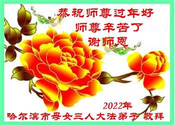 【明慧网二零二二年二月一日】 黑龙江省哈尔滨市一大法弟子恭祝师尊新年快乐!