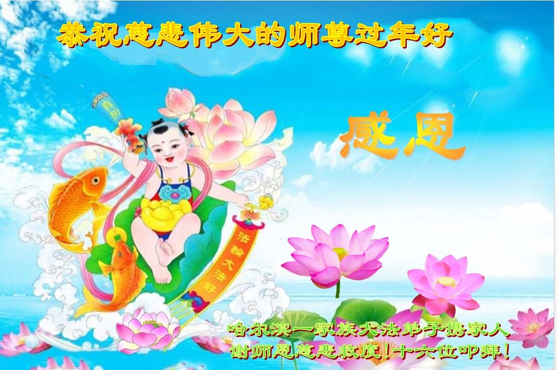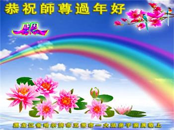 在这新春佳节之日,我在此代表我们双城市朝阳乡全体大法弟子向慈悲伟大的恩师问候新年好!祝师尊新年快乐!感谢师尊的慈悲救度与保护;感谢师尊的不断点化和加持;感谢师尊对我家人的救度。在新的一年里弟子会更加精進,兑现誓约,完成使命。 黑龙江省哈尔滨市道里区的大法弟子恭祝慈悲伟大的师尊新年快乐!