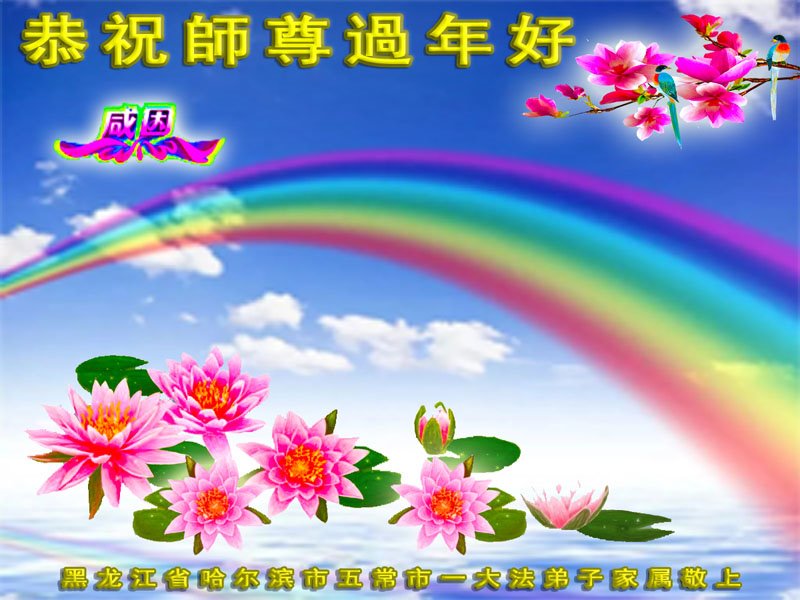 值此中国新年来临之际,我们全家恭祝慈悲伟大的师尊新年好!在此道一声:师尊您辛苦了。弟子们想念您!回首过去修炼的岁岁月月,师尊无时无刻都看护在弟子身边、保护着、保护着弟子,再次衷心感谢师尊。弟子们在今后的日子里一定谨遵师尊教诲,做好师尊要求的三件事,不辜负师尊的慈悲救度。 黑龙江省哈尔滨市双城市朝阳乡全体大法弟子向慈悲伟大的师父问候新年好;祝师尊新年快乐!