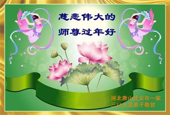 河北省唐山所有大法弟子在中国传统新年用感恩的心情给慈悲伟大的师尊拜年!师尊过年好!