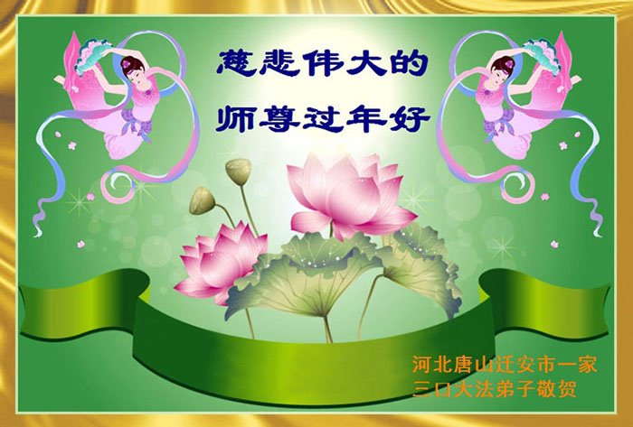 师尊辛苦了!谢谢师尊的慈悲苦度! 河北省唐山市丰润区全体大法弟子在中国传统年用感恩的心情给慈悲伟大的师尊拜年!师尊过年好!