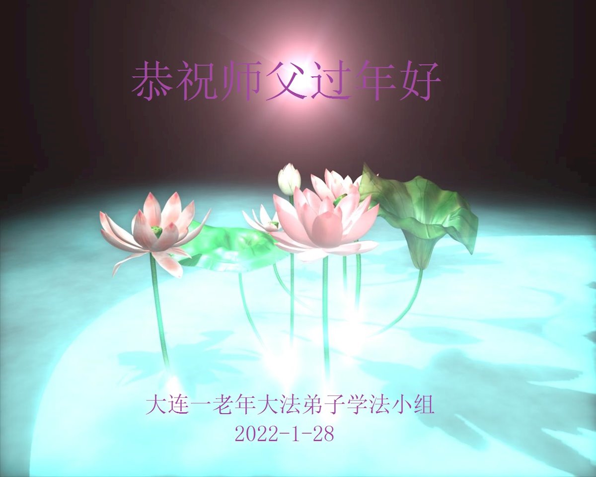 【明慧网二零二二年二月一日】 辽宁省大连一老年学法小组大法弟子恭祝师父过年好!