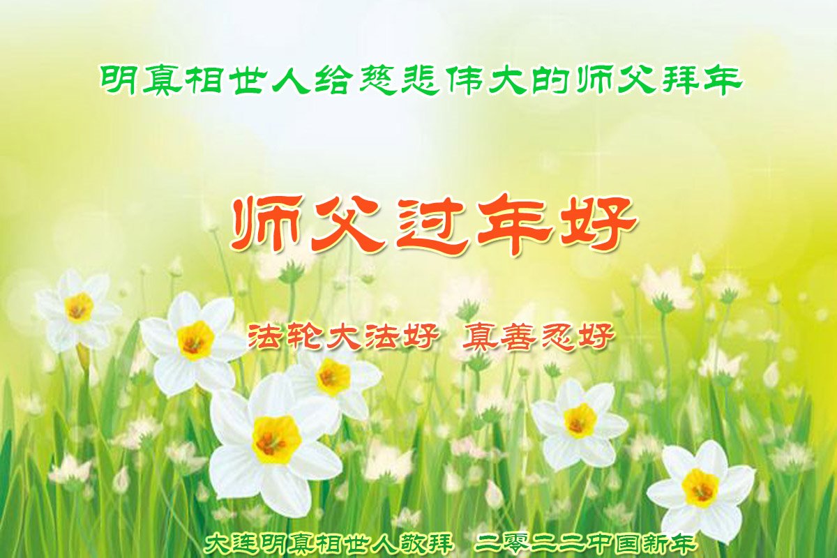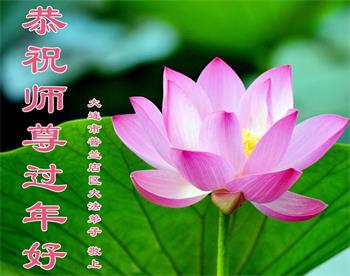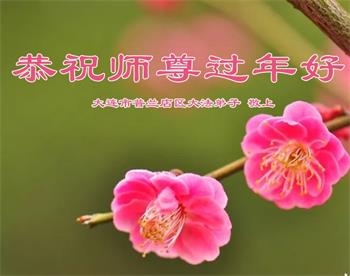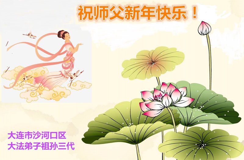 在中国虎年来临之际,弟子们恭祝师尊过年好,您辛苦了!弟子们无法用人类的语言感恩师尊的慈悲救度!您的洪恩弟子无以回报,唯有在向法正人间过度的日子里,走正走好最后的路。多学法,学好法,向内找,修好自己,助师正法,多救众生,兑现自己的史前誓约。惟愿师尊笑!弟子们叩谢师恩! 辽宁省大连景山小区全体大法弟子恭祝师尊过年好!