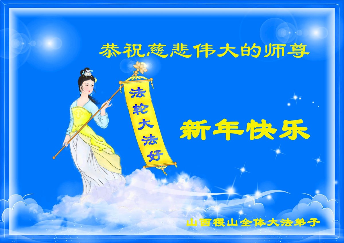 感恩师父的慈悲苦度!弟子一定静心学法,多学法,去掉不好的心,助师正法,多救人。 山西省晋城市陵川县全体大法弟子恭祝慈悲伟大的师尊新年快乐!
