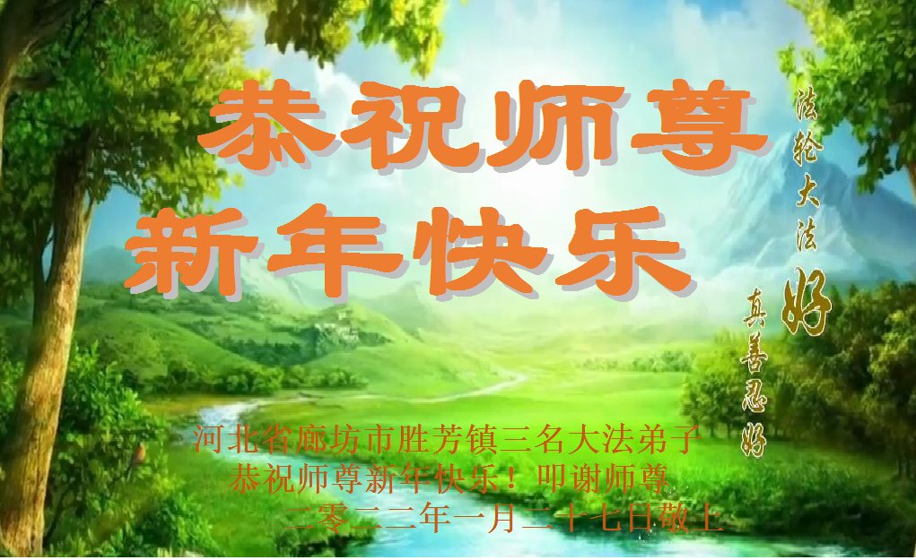 【明慧网二零二二年二月一日】 河北省廊坊市胜芳镇三名大法弟子恭祝师尊新年快乐!