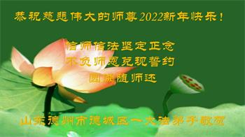 山东德州市德城区一大法弟子恭祝慈悲伟大的师尊2022新年快乐!