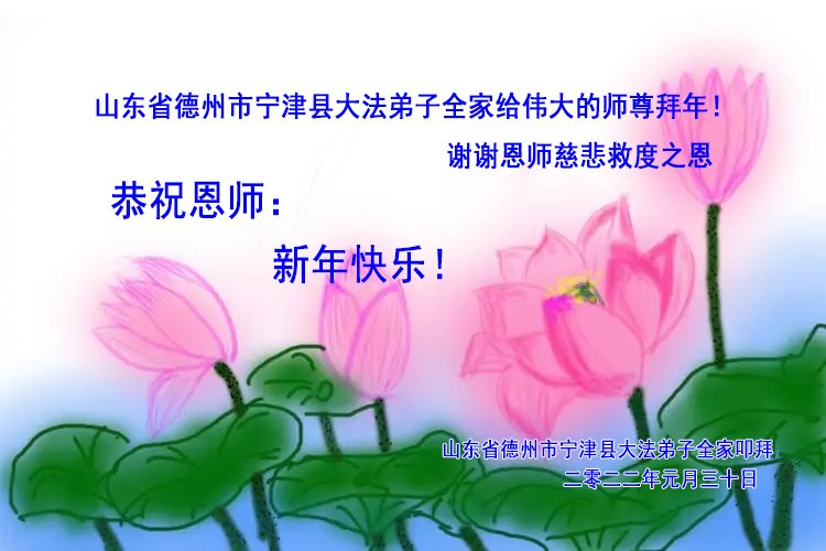 【明慧网二零二二年二月一日】 山东德州市武城县大法弟子恭祝慈悲伟大的师尊2022新年快乐!