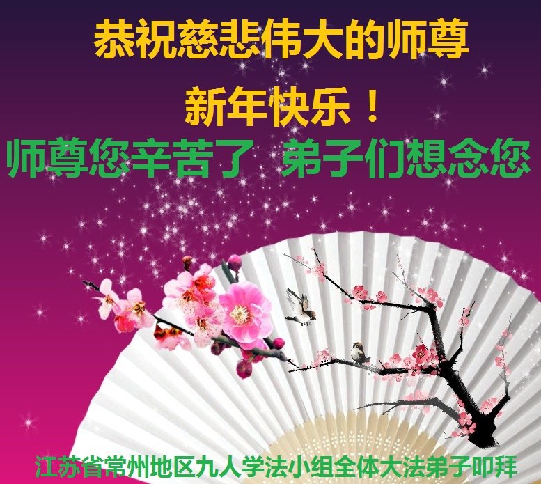 恭祝慈悲伟大的师尊新年快乐! 法轮大法好 !真善忍好! 江苏省常州市金莲学法小组全体大法弟子叩拜 江苏盐城市一大法弟子恭祝师父过年好!
