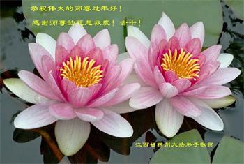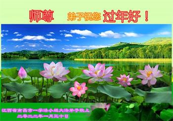 谢谢师父救度!弟子们将谨记师尊教诲,新的一年更加精進,争取救更多众生。 江西省九江市浔阳区全体大法弟子恭祝师父新年快乐!