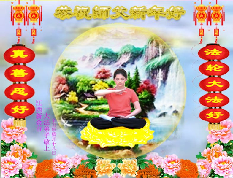 中国新年即将到来,弟子们在新的一年里,在修炼中尽快提高,在救度众生中要有所突破。叩拜!合十 江西省新余市一大法弟子恭祝师父新年好!