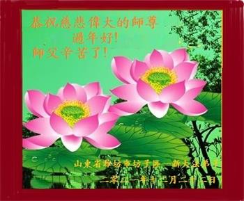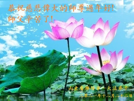 恭祝师尊过年好! 山东省潍坊市临朐县一真相小组大法弟子敬贺 山东省潍坊市诸城市一大法弟子恭祝伟大慈悲的师尊:新年快乐!