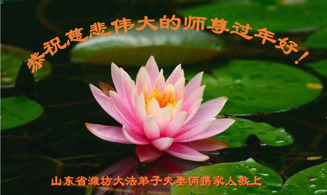 慈悲伟大的师尊:您辛苦了! 我们小组全体大法弟子想念师父,愿师父带领神韵早日回国与国内的全体大法弟子团聚,我们相信这个愿望很快就会到来。同时我们会做好三件事,跟上师父的正法進程,多学法,修好自己,多救人,不负师恩,圆满随师还。 山东省潍坊大法弟子夫妻俩携全家人恭祝慈悲伟大的师尊过年好!