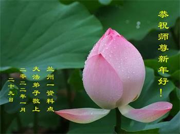 慈悲伟大的师尊您好!您辛苦了! 在2022年新年来临之际,弟子怀着无比感恩的心遥祝师尊新年快乐!感恩师尊给予弟子的一切:收我为大法弟子;传给我大法,拉着我一步一步走稳修炼的路,教我从一点一滴上学会真正的修炼,教我按“真 善 忍”做人修心!伟大的师尊对弟子恩重如山如天,弟子无以为报,就是认真的学法修炼,努力弥补救人的巨大不足,功成圆满,随师回家! 甘肃兰州大法弟子遥祝 合十 2022年1月27日晚 甘肃省兰州市大法弟子恭祝师尊过年好!