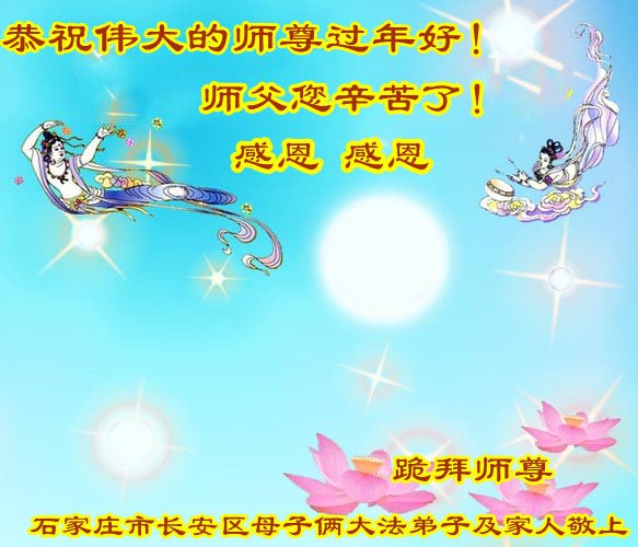 河北省石家庄市一夫妻大法弟子给师父拜年!恭祝师父新年好!