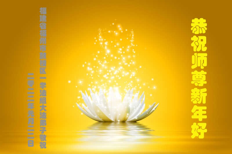 我们学法小组全体大法弟子怀着对师父的感恩和思念的心,双手合十、真挚的恭祝伟大慈悲的师父过年好!修炼的路上,一直都是在师父的加持和护佑下,使我们成熟起来的。大家决心把师父的话牢记在心,手牵手走好走正最后修炼的路。抓紧一切时间讲真相救世人;抓紧一切时间多学法、学好法、修好自己;抓紧一切时间勇猛精進,做好该做的一切,兑现誓约,做随师法正人间的真修弟子。 弟子双手合十,叩拜伟大的师尊! 福建省福州市一大法弟子恭祝慈悲伟大的师父新年快乐!