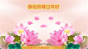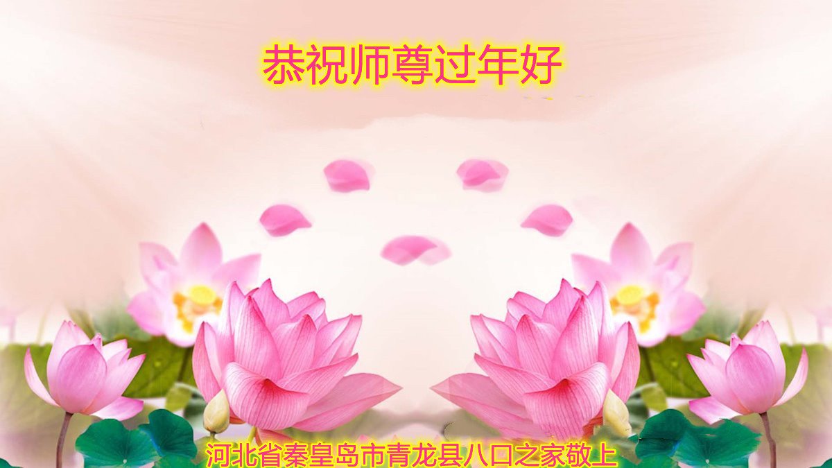 恭祝师尊新年快乐!师尊辛苦了! 弟子感恩师尊为众弟子、众生铺就回天之路。师尊的救度洪恩无以回报,弟子唯有精進救人不怠。 河北省秦皇岛市昌黎县母女俩大法弟子叩拜 河北省秦皇岛市青龙县全体老年大法弟子恭祝师尊新年快乐!