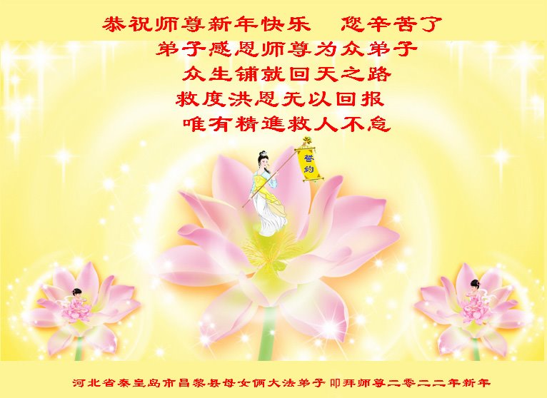 【明慧网二零二二年二月一日】 河北省秦皇岛市一学法小组三人大法弟子恭祝师尊过年好!
