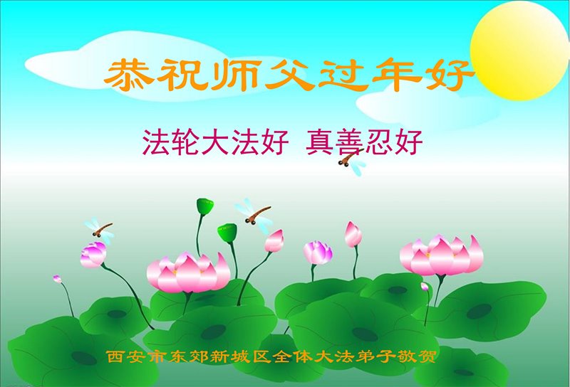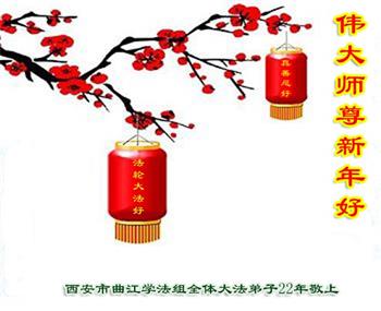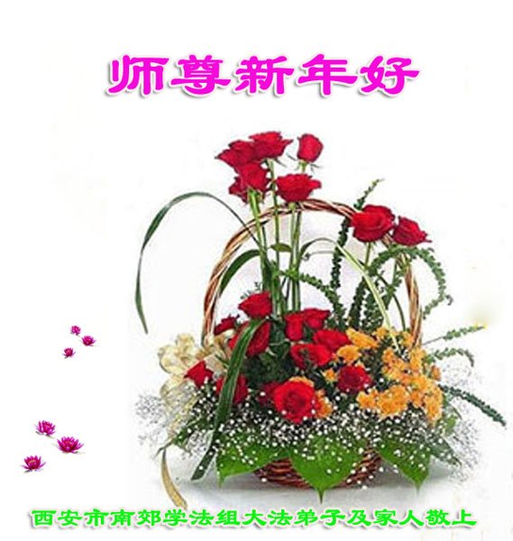 恭祝师父新年快乐! 辞旧迎新之际,大法進程也迎来新的阶段,感恩师尊普度众生,一等再等挽回更多迷途众生。愿新的一年大法弟子能够做好三件事,助师正法完成来时的使命! 陕西省西安市大法弟子恭祝伟大的师尊新年快乐!