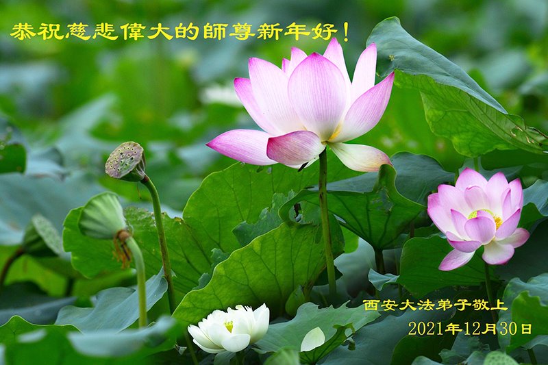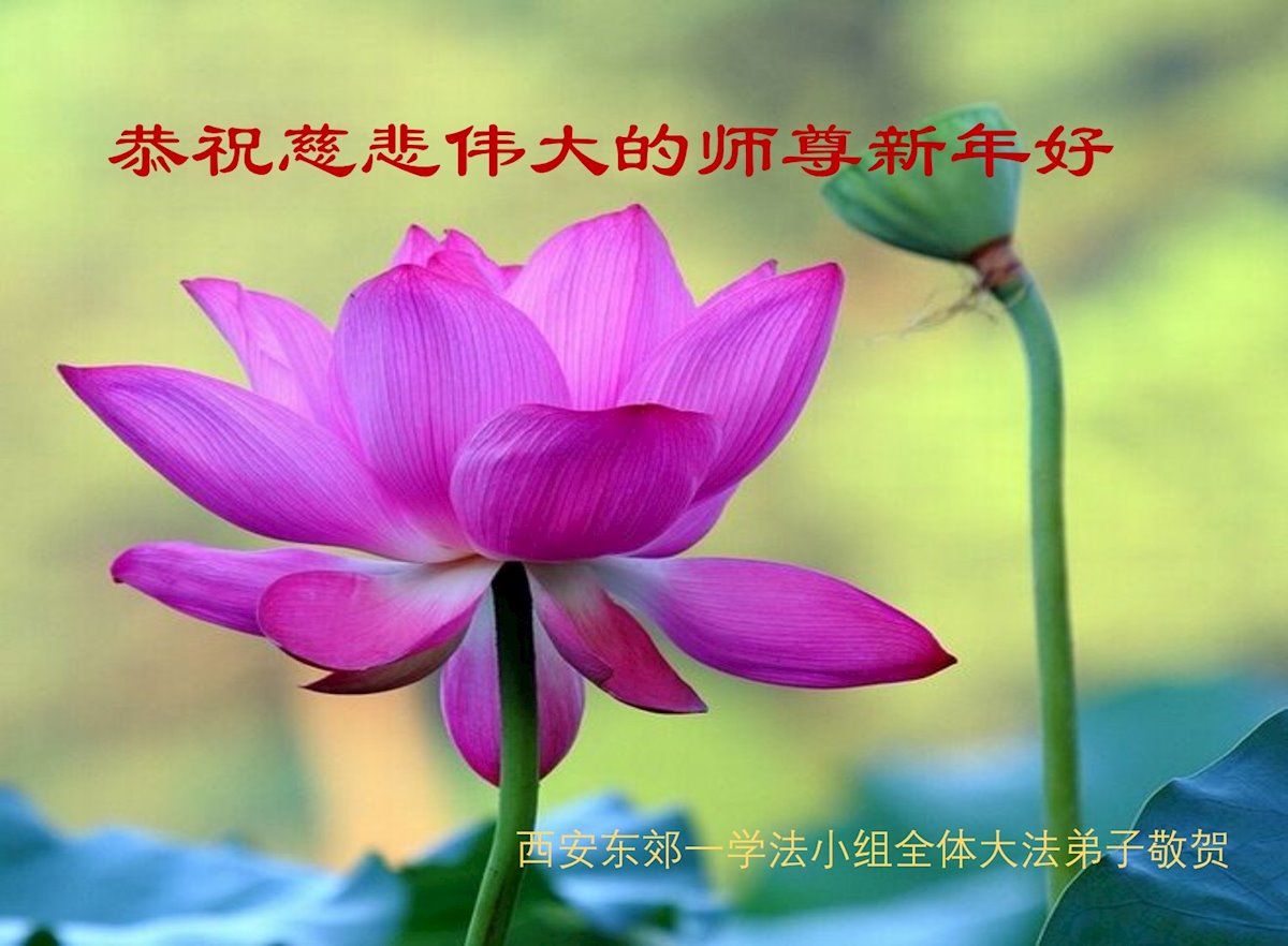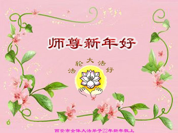 弟子感谢恩师,祝愿师尊新年好!感恩师尊为众弟子与无量众生的巨大艰辛付出,师父辛苦了! 陕西西安一大法弟子恭祝师尊新年快乐!