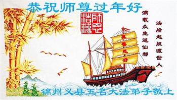 今年是法轮大法洪传三十周年。弟子在新的一年里,修好自己,提高心性,不负使命,多救人,兑现史前大愿。 辽宁省锦州市义县一大法弟子及明真相家人恭祝师尊新年好!谢谢师尊慈悲救度!师尊您辛苦了!
