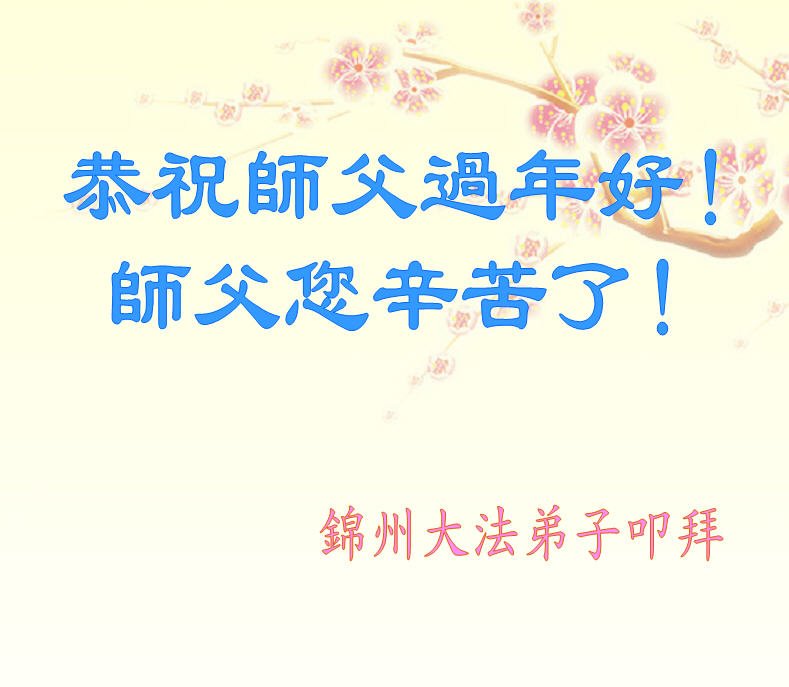 恭祝师父新年快乐!感恩师父救度弟子,叩拜恩师。 辽宁锦州大法弟子恭祝慈悲伟大的师尊过年好!