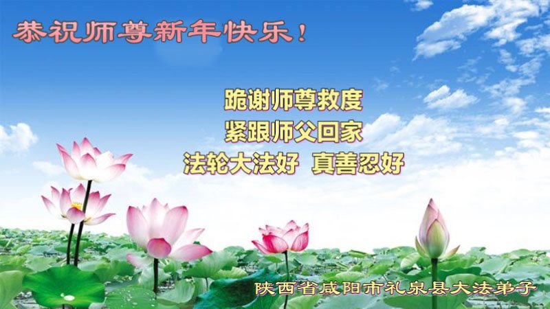 恭祝师尊新年快乐!感谢师尊这一年来的看护。 陕西省咸阳市礼泉县一学法小组全体大法弟子恭祝师尊新年好!