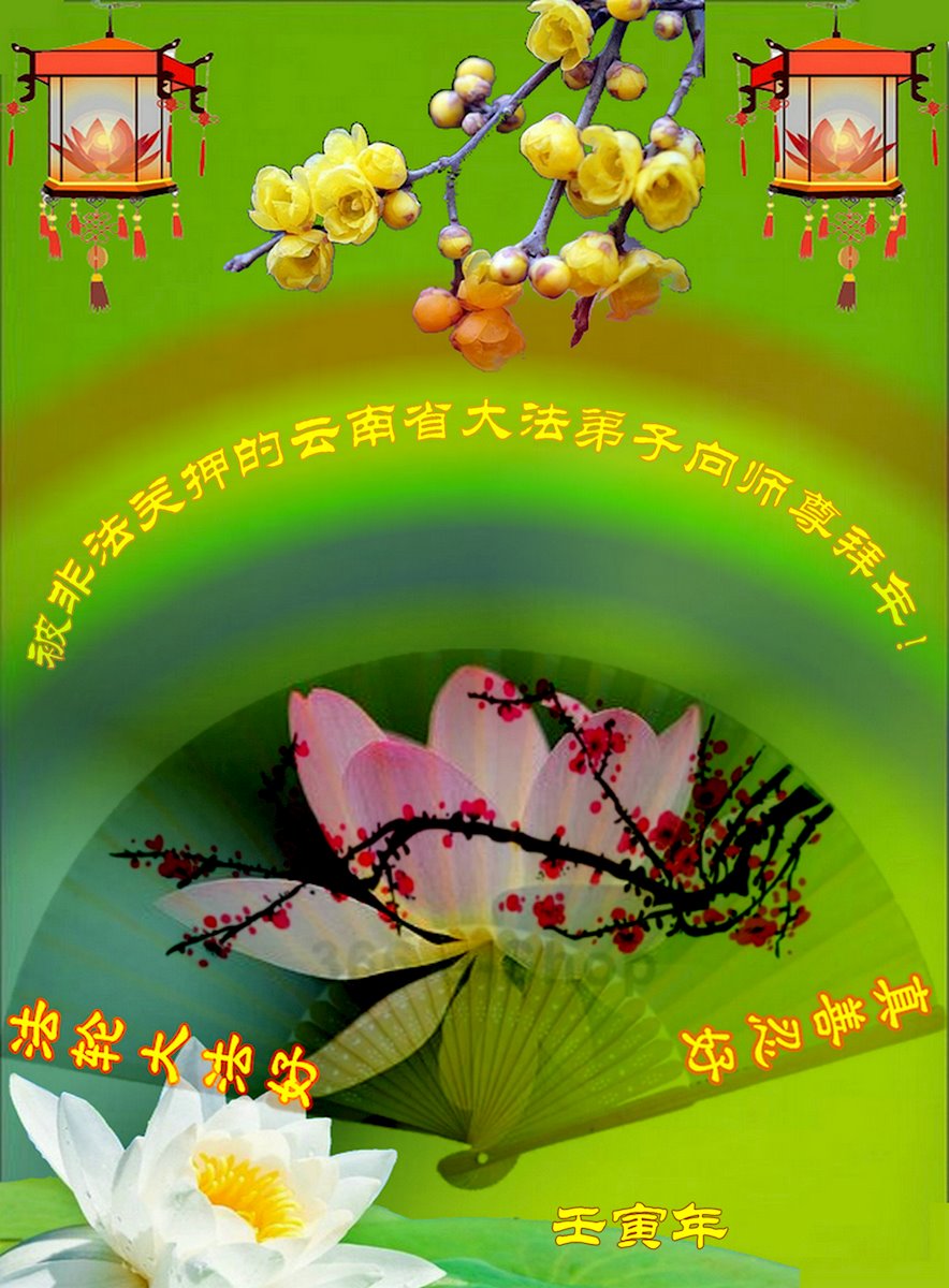 感恩师父的慈悲救度!虽然弟子身陷囹圄,但是坚修大法的心永不会变。无论在任何环境下一定按照法的标准严格要求自己,用修炼人的心态慈悲众生,遇事向内找,放下执着,圆满跟师父回家。 被非法关押的云南省大法弟子向师尊拜年!