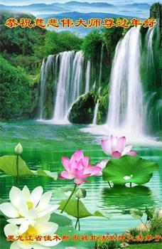 慈悲伟大的师尊您辛苦了!无论环境多么恶劣,弟子们坚修大法到底,在黎明前的黑暗中,请师尊加持弟子救度更多的有缘人,以报师尊的慈悲苦度!在新年来临之际,千言万语化作一句话:恭祝慈悲伟大的师尊新年快乐! 跪拜师尊!合十 河北廊坊三河市被非法关押大法弟子恭祝慈悲伟大的师父过年好!