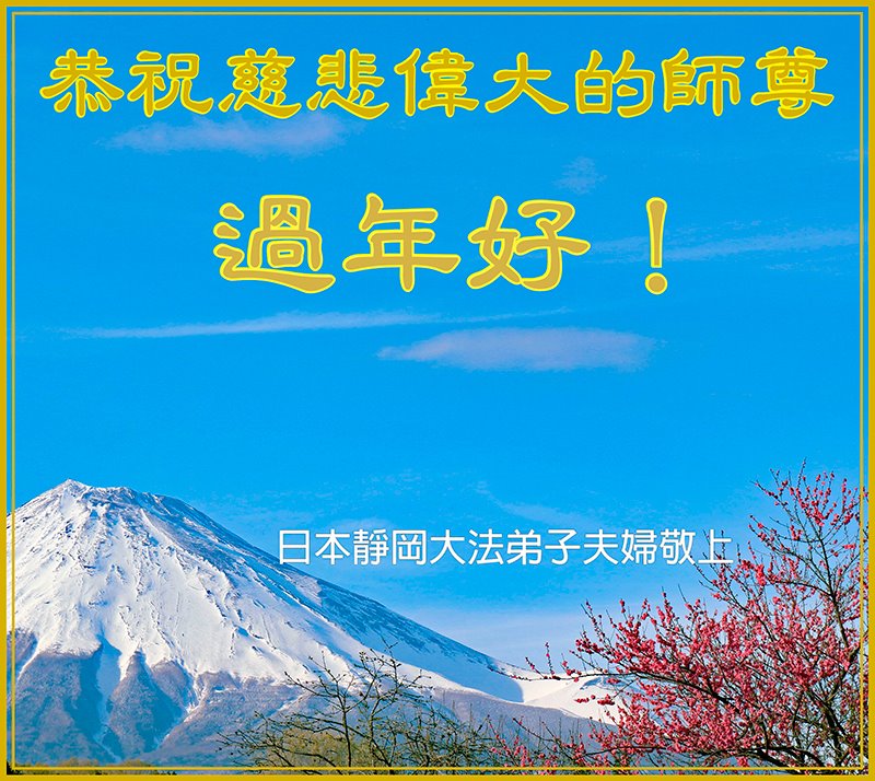 日本静冈大法弟子夫妇恭祝师尊过年好!