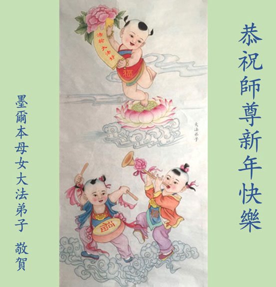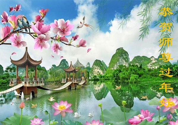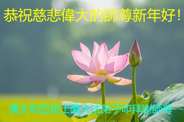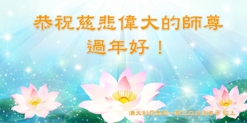 恭祝慈悲伟大的师尊中国新年快乐! 弟子感恩师尊慈悲救度,弟子一定做好三件事,精進实修! 悉尼母女大法弟子敬上 澳大利亚悉尼一大法弟子全家恭祝慈悲伟大的师尊中国新年快乐!