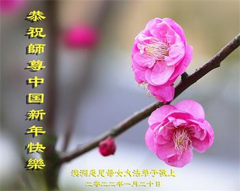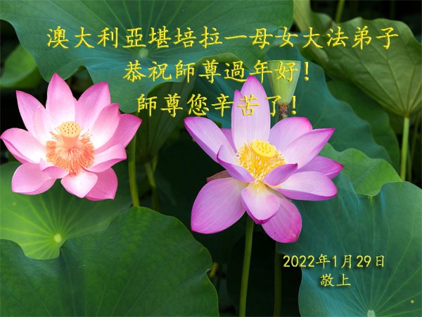 在这辞旧迎新的时刻,我们新西兰大法弟子感谢师尊洪恩,是师父慈悲救度,才有我们的今天! 在今后的时间里,我们要遵循师尊的教诲,做好师父安排的三件事,做合格的大法弟子。 澳大利亚堪培拉一母女大法弟子恭祝师尊过年好!