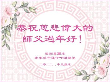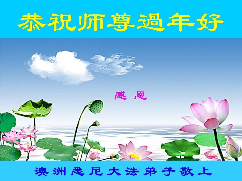 感谢师父慈悲救度!在新的岁月里,我们坚信师父,坚信大法,修好自己,讲清真相多救人。 澳大利亚悉尼大法弟子恭祝慈悲伟大的师尊中国新年快乐!