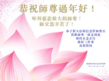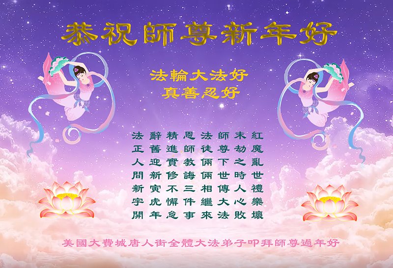 【明慧网二零二二年二月一日】 美国大费城唐人街全体大法弟子叩拜恭祝师尊过年好!