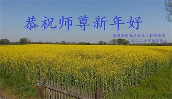 尊敬的师尊好!感谢师尊的慈悲救度! 弟子是德国隐形冠军行业的一名工程师。在被中共迫害中,大法陪伴我度过了在劳教所被非法关押的那段难忘岁月。 来到德国后,在您的保护下,弟子不断成长。弟子所在的企业是该行业在世界的龙头,弟子谨遵师命,认真工作,心怀众生,让世人看到了大法弟子的正面形象。 作为您的弟子,我无比荣耀,在新年来临之际,弟子代表德国机械制造行业的工程师以及国内外三代老少十二人恭祝师尊新年快乐! 荷兰大法弟子与家人恭祝慈悲伟大的师尊过年好!