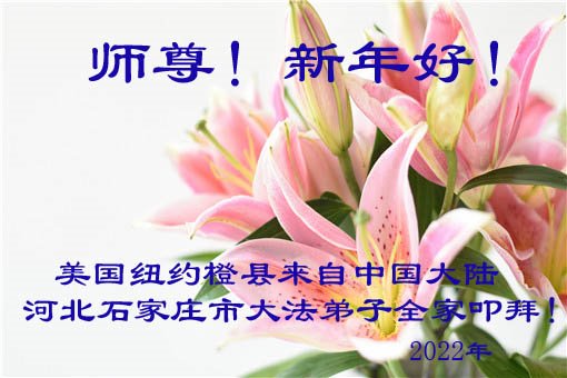 恭祝师尊中国新年快乐! 纽约一大法弟子携全家敬贺 二零二二年一月十六日 美国纽约大法弟子恭祝慈悲伟大的师尊中国新年快乐!
