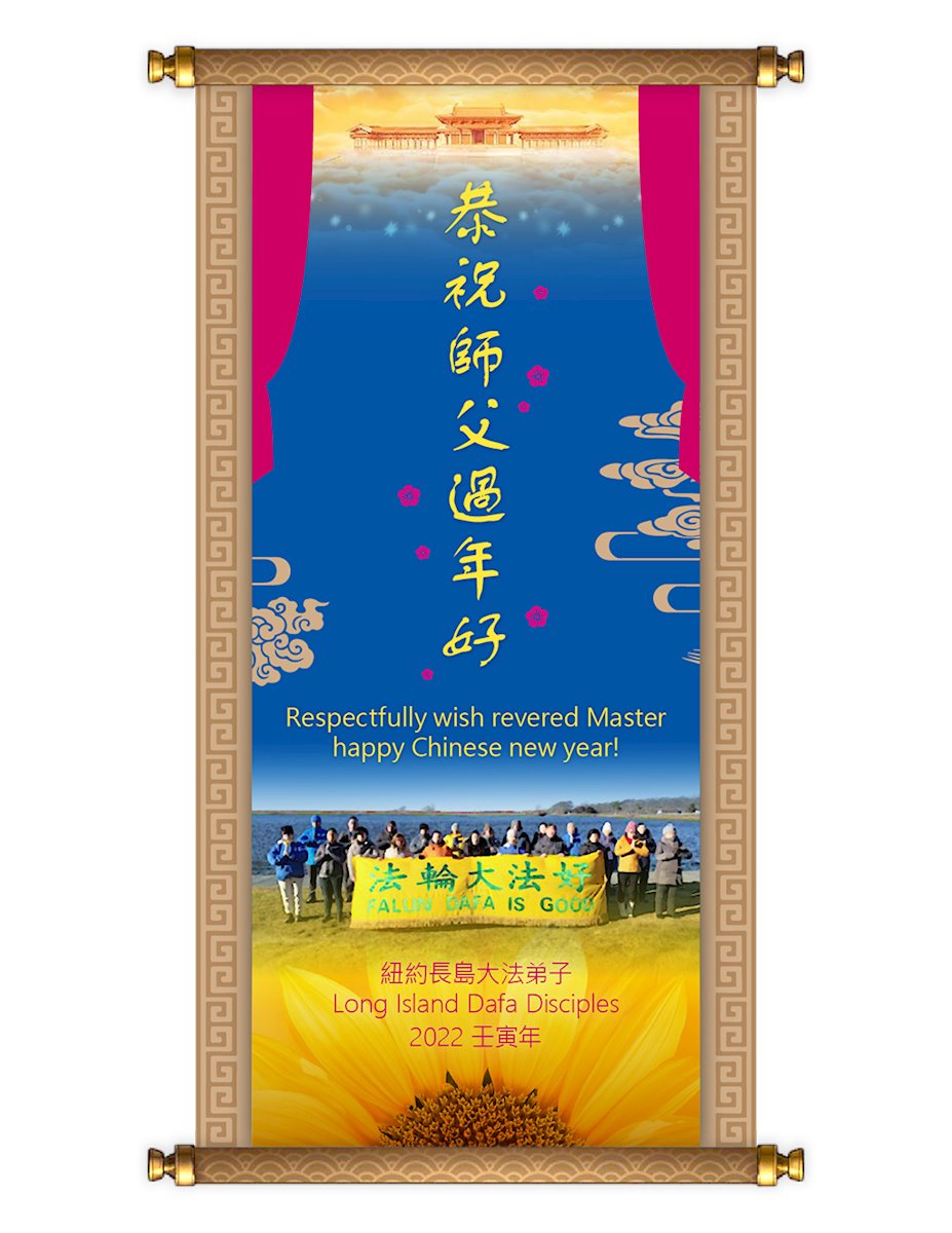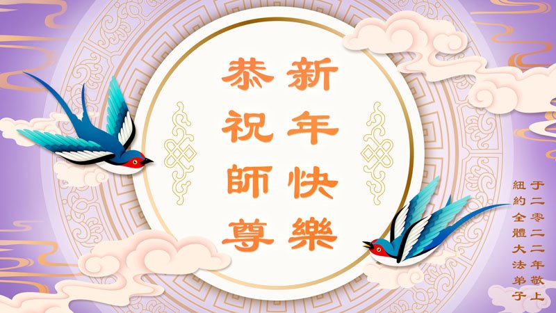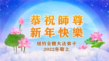 【明慧网二零二二年二月一日】 美国纽约大法弟子恭祝慈悲伟大的师尊新年快乐!