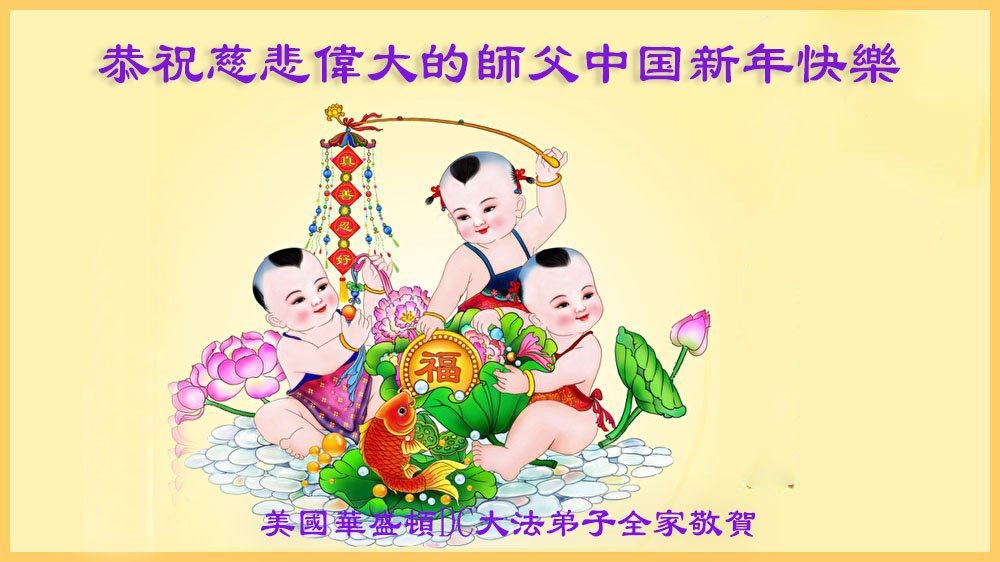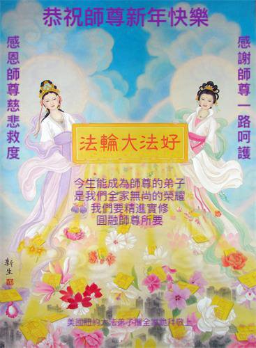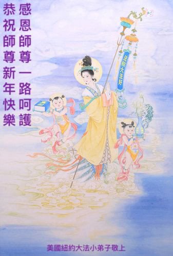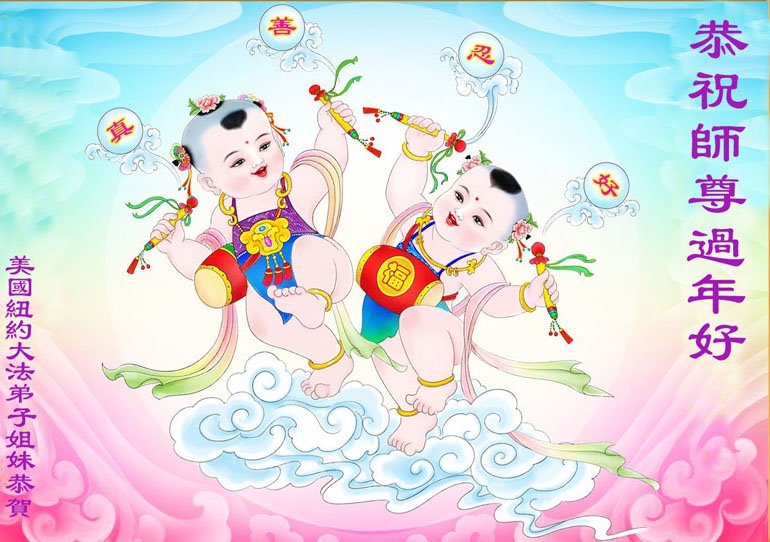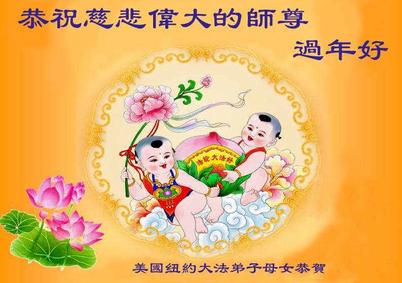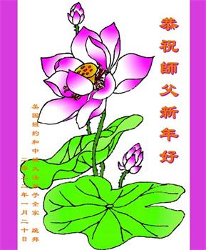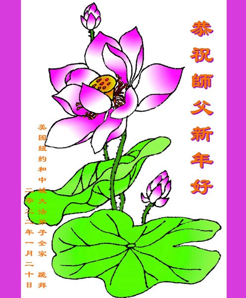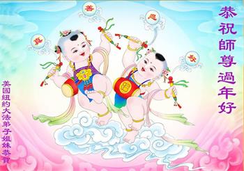 恭祝慈悲伟大的师父中国新年快乐! 纽约一大法弟子携全家敬贺 纽约大法弟子恭祝慈悲伟大的师父中国新年快乐!