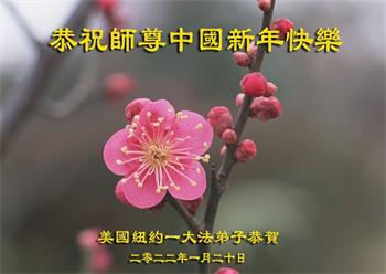 恭祝慈悲伟大的师尊中国新年快乐! 在新的一年里弟子一定严格要求自己,做好三件事,精進实修。 纽约大法弟子敬上。 二零二二年一月十六日 美国纽约大法弟子恭祝慈悲伟大的师尊中国新年快乐!